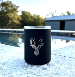 This Limited Edition Whiskey Glass is perfect for the deer hunter. It is glass lined, so you can take your whiskey neat, or on the rocks, without that metallic taste or smell. The exterior is made of stainless steel, which will keep your whiskey at just the right temperature, so you can enjoy it at your pace. The glass insert is dishwasher safe and comes with a slide close through lid. Holds 12 oz.